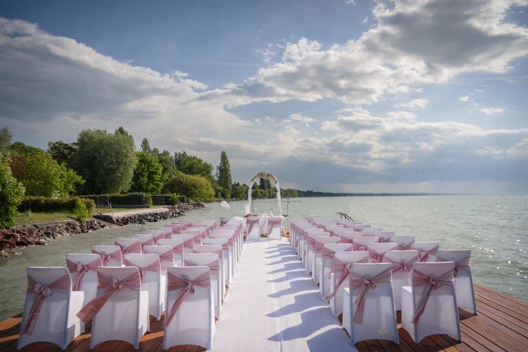 azonban a 140m2-es stég is a rendelkezésére áll, ahol a Balaton víztükrén is kimondhatják a boldogító igent. Kívánságra az anyakönyvvezető házhoz jön, így a teljes ceremónia lebonyolítható a meseszép parkkal is rendelkező panzióban.